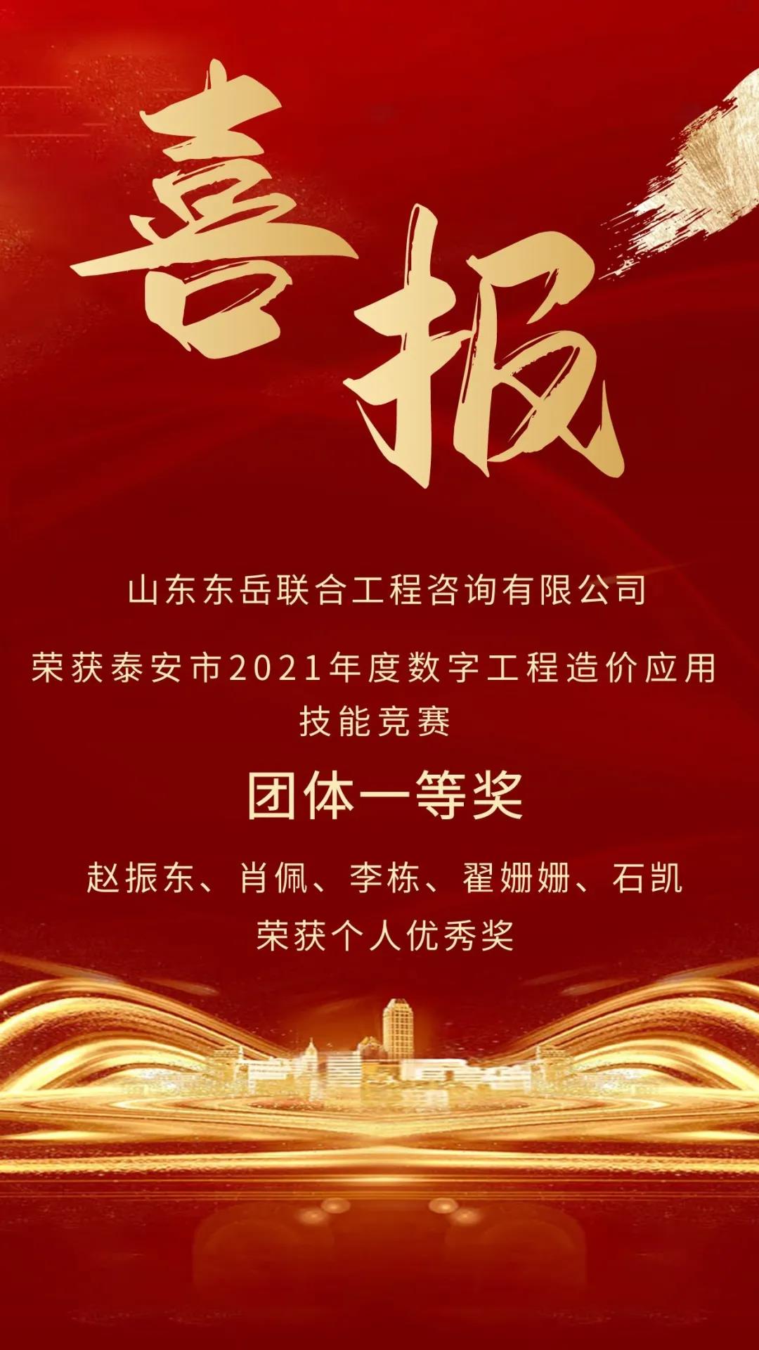 10月28日,由泰安市建设工会、泰安市工程建设指导服务中心联合举办的泰安市2021年度数字工程造价应用技能竞赛(土建专业)落下帷幕,山东东岳联合工程咨询有限公司荣获泰安市团体一等奖,我公司赵振东、肖佩、李栋、翟姗姗、石凯五位同志荣获个人优秀奖。赵振东、肖佩入选泰安市代表队参加山东省数字工程造价应用技能竞赛。