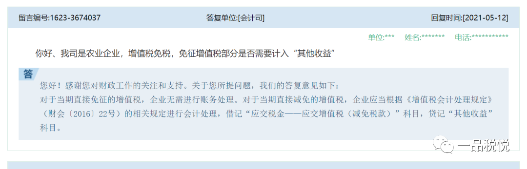 1.我公司是农业企业,增值税免税,免征增值税部分是否需要计入“其他收益”?