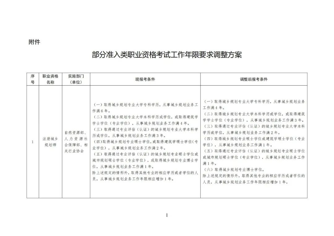 附件:部分准入类职业资格考试工作年限要求调整方案