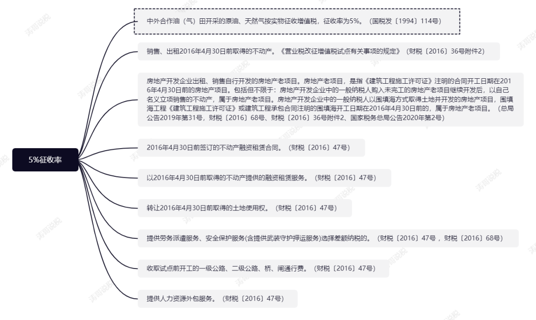 4. 中外合作油(气)田开采的原油、天然气按实物征收增值税,征收率为5%。(国税发〔1994〕114号)