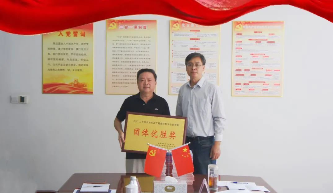张峰董事长带领杨木主任一行参观了集团内设,并在集团党员活动室进行了深入座谈。座谈会由市建设工程指导服务中心副主任赵华东主持。赵主任介绍了本次活动有关情况,并宣读关于公布市级造价数字创新竞赛“优胜团体奖”的通知。杨木主任为山东东岳联合工程咨询有限公司颁发“优胜团体奖”奖牌,并赠送造价、招标业务等书籍。