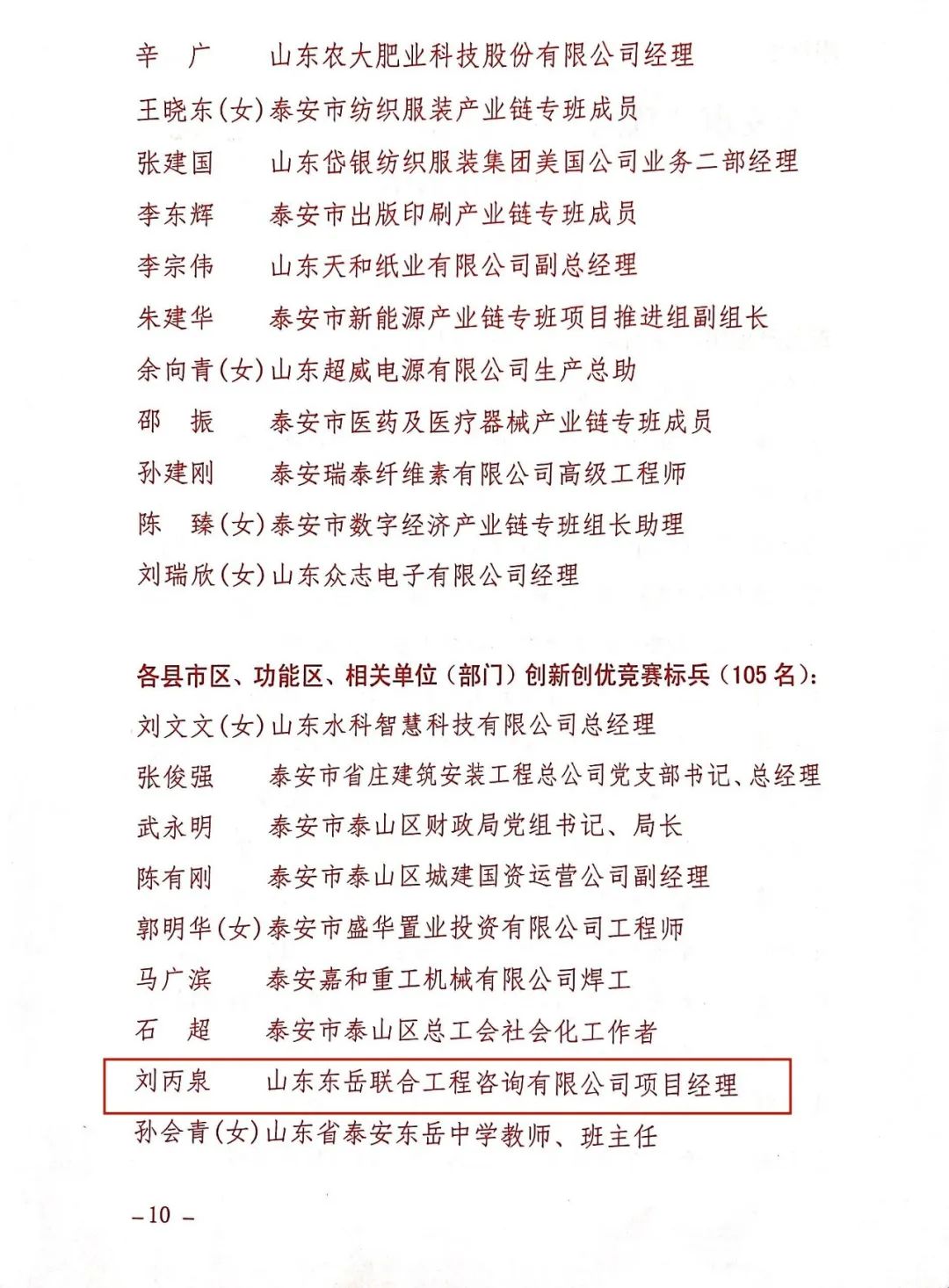 勇立潮头,锐意进取创佳绩。近年来,建筑业逐渐转型升级,向着信息化、数字化、低碳化方向发展,工程组织模式、造价制度、劳务用工制度、咨询管理、招投标、资质等各个领域也迎来大幅改革。刘丙泉抢抓机遇、勇立潮头,学懂弄精EPC、PPP、BIM、装配式、司法鉴定、涉铁项目、营改增、农民工工资支付等专业知识,协调各方争议、纠纷,倾心为客户提供“精专细”式的服务,刘丙泉经手的项目连续五年被评为“精品项目”。随着刘丙泉业内知名度不断提高,几年来他经手的项目总投资额约100亿元,竣工结算审减总额约20亿元,为泰安新型工业化强市建设贡献了突出力量。