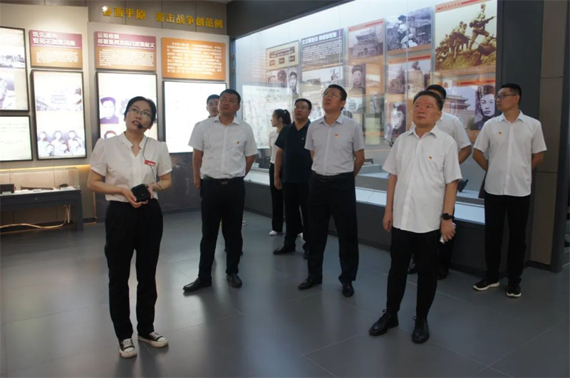 随后,在讲解员的带领下,现场接受革命传统教育洗礼,深入领会革命精神的历史意蕴和时代内涵。依次参观了《抗日号角》、《烽火齐鲁》、《英雄徂徕》、《钢铁党军》四个展区,在展厅内同时观看《徂徕山上战旗红》的多媒体专题片。