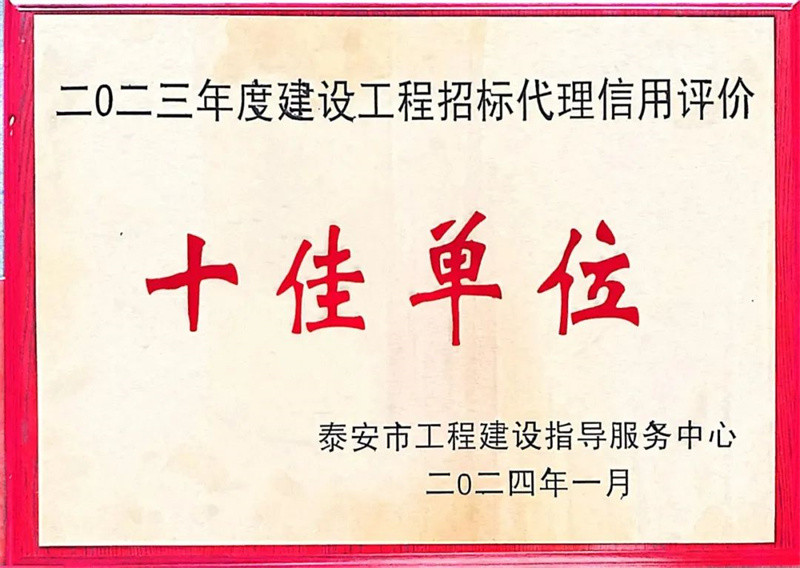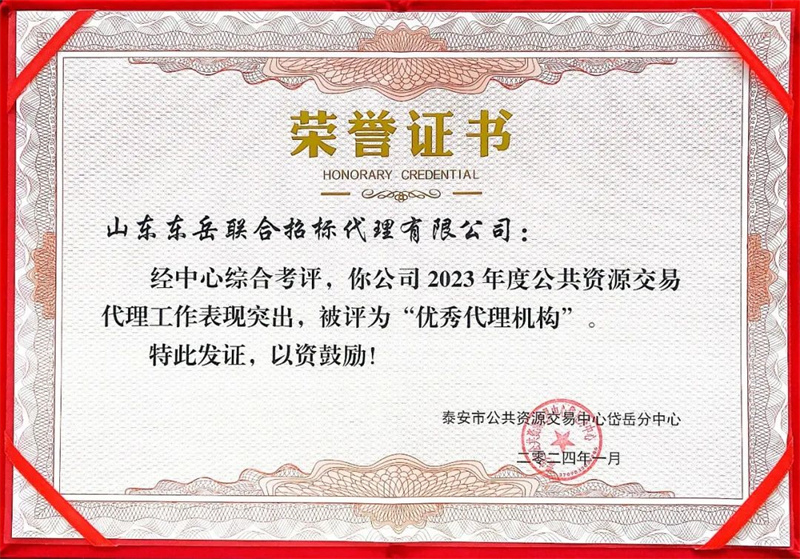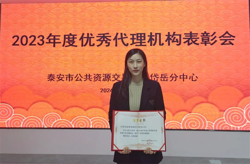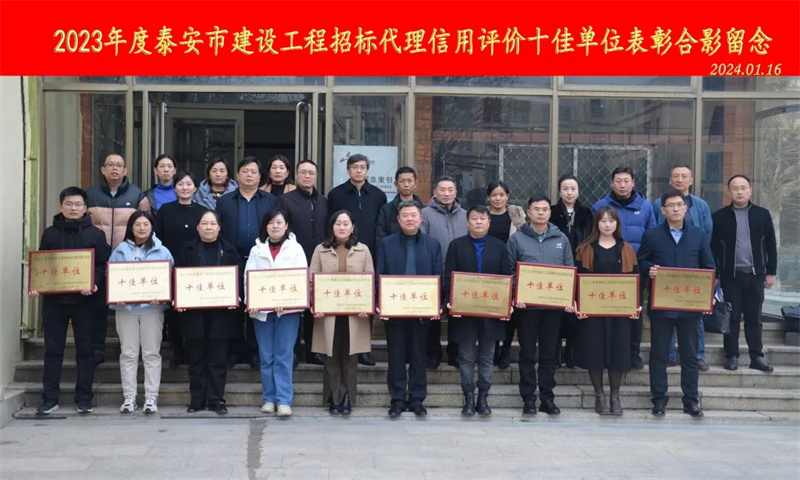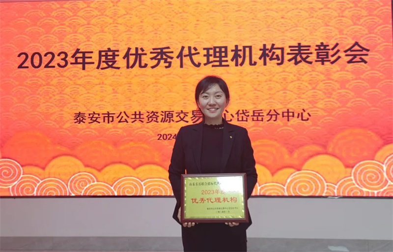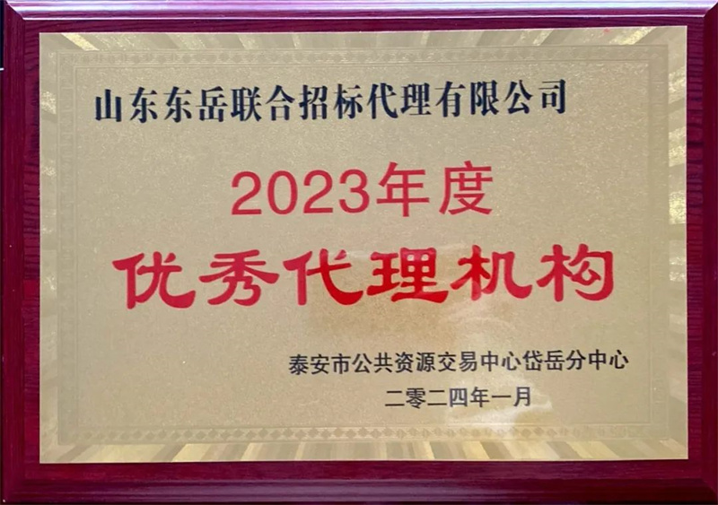 1月17日,泰安市公共资源交易中心岱岳分中心召开2023年度优秀代理机构表彰大会,旨在总结工作,鼓励先进,树立典型,从代理项目数量、培训学习情况、党建公益活动开展、上年度荣誉奖项获得等方面综合汇总评价,我单位荣获“2023年度优秀代理机构”称号。