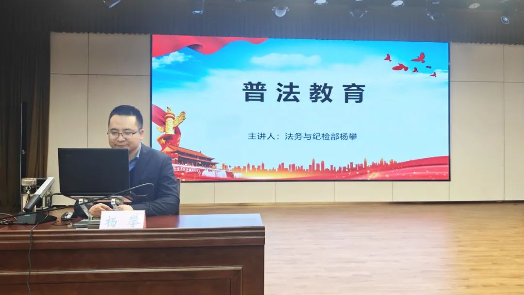 为深入学习贯彻习近平法治思想,不断提升依法合规经营治理能力和水平,切实提高集团员工的法律意识和合规素质,2月18日至19日,东岳联合开展普法专题讲座,进行法律知识培训。集团法务与纪检部杨攀就企业常见刑事风险与企业合规、新《公司法》、《企业注销指引(2023年修订)》进行了详细解读,全体员工参与培训。