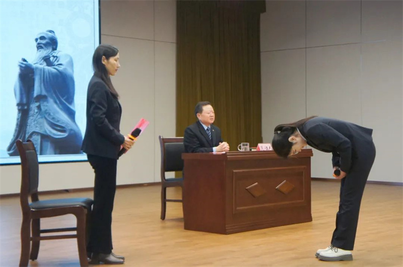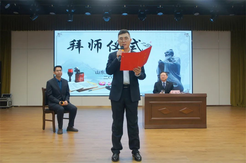 在主持人的引导下,拜师仪式正式开始。弟子先简要自我介绍并宣读《拜师誌》。