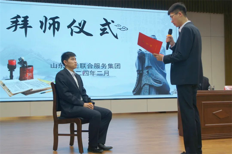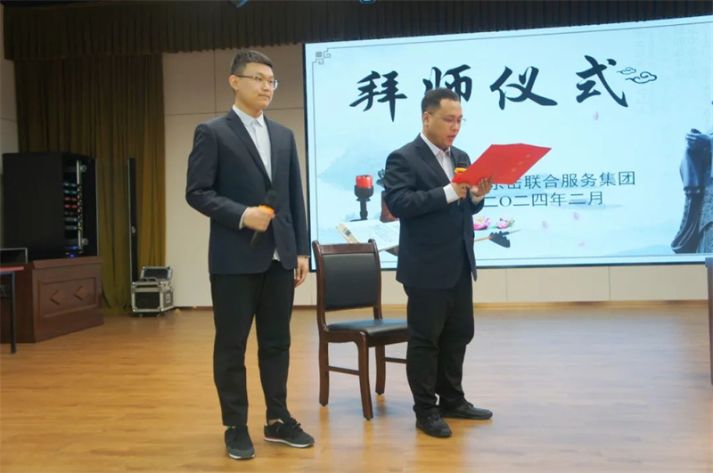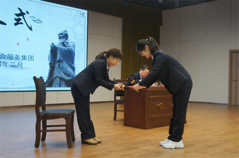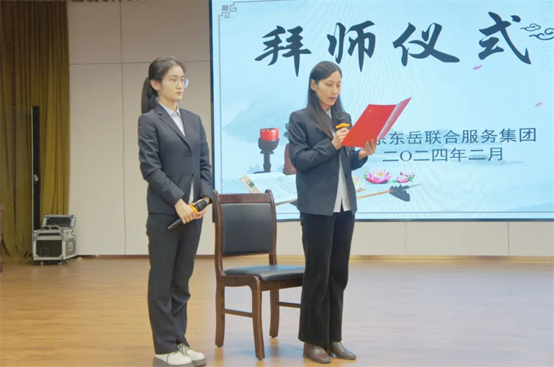 为弘扬“传、帮、带”精神,进一步帮助青年员工快速成长,充分发挥优秀骨干的示范作用,实现队伍水平的整体提升,推动集团事业蓬勃发展,2月18日下午,山东东岳联合服务集团举行第九届拜师仪式,共七对师徒结成对子。