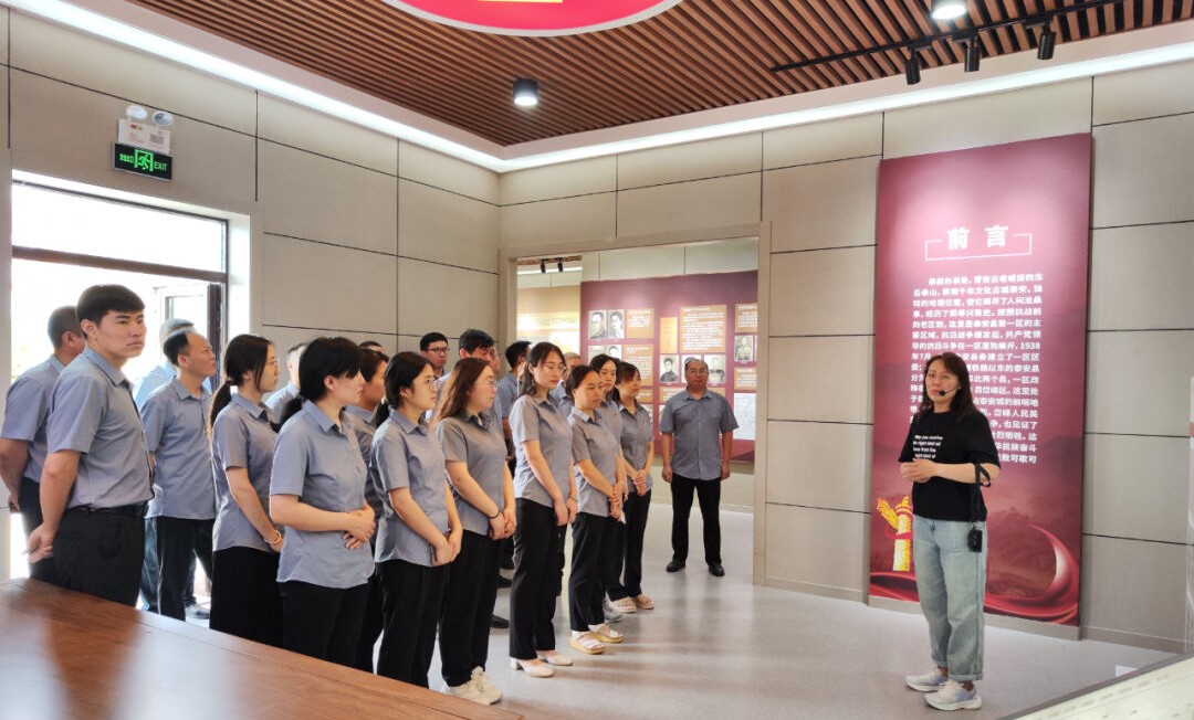 为庆祝中国共产党成立103周年,弘扬伟大建党精神,进一步巩固和深化学习贯彻习近平新时代中国特色社会主义思想主题教育成果,切实推动党纪学习教育走深走实,提高党总支的凝聚力和号召力,搭建党员沟通互动平台,为集团事业高质量发展作出新的更大贡献。6月22日上午,集团党总支组织全体党员到泰前街道水牛埠村岱峰红色纪事馆开展了“凝心铸魂强党性,坚定信念守初心”主题党日活动。全体党员走进岱峰红色纪事馆,在解说员的带领下,认真参观了《抗日烽火燃泰汶》《浴血抗战泰北(历)县》《抗战前哨岱峰区》《敌工英雄鲁宝琪》《泰山“红嫂”张培芝》《英烈千秋励后人》六大展区。党员们通过观摩历史图片和文献资料,仔细瞻仰陈列物品,真切地感受到了先烈们英勇战斗、忠贞不渝的革命精神。踏着红色足迹,共同追忆峥嵘岁月,在一幅幅陈旧照片和一段段革命故事中重温抗战时期岱峰儿女的伟大壮举,更加坚定了牢记初心使命、严守党纪党规、奋力担当作为的决心和奋进新征程,建功新时代的信心。