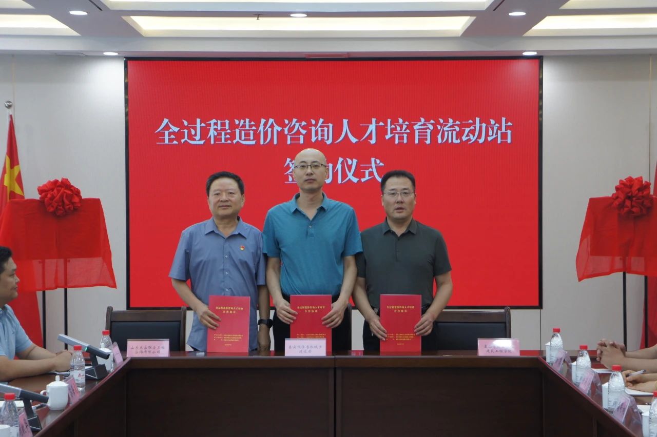 为进一步推进全过程造价咨询服务模式,促进教育链、人才链、产业链、创新链深度融合,探索政、校、企共同培育全过程造价咨询人才。7月30日,泰安市住房和城乡建设局、泰山学院、山东东岳联合工程咨询有限公司分别代表政、校、企三方在山东东岳联合集团八楼合伙人会议室举办“全过程造价咨询人才培育流动站”揭牌活动。