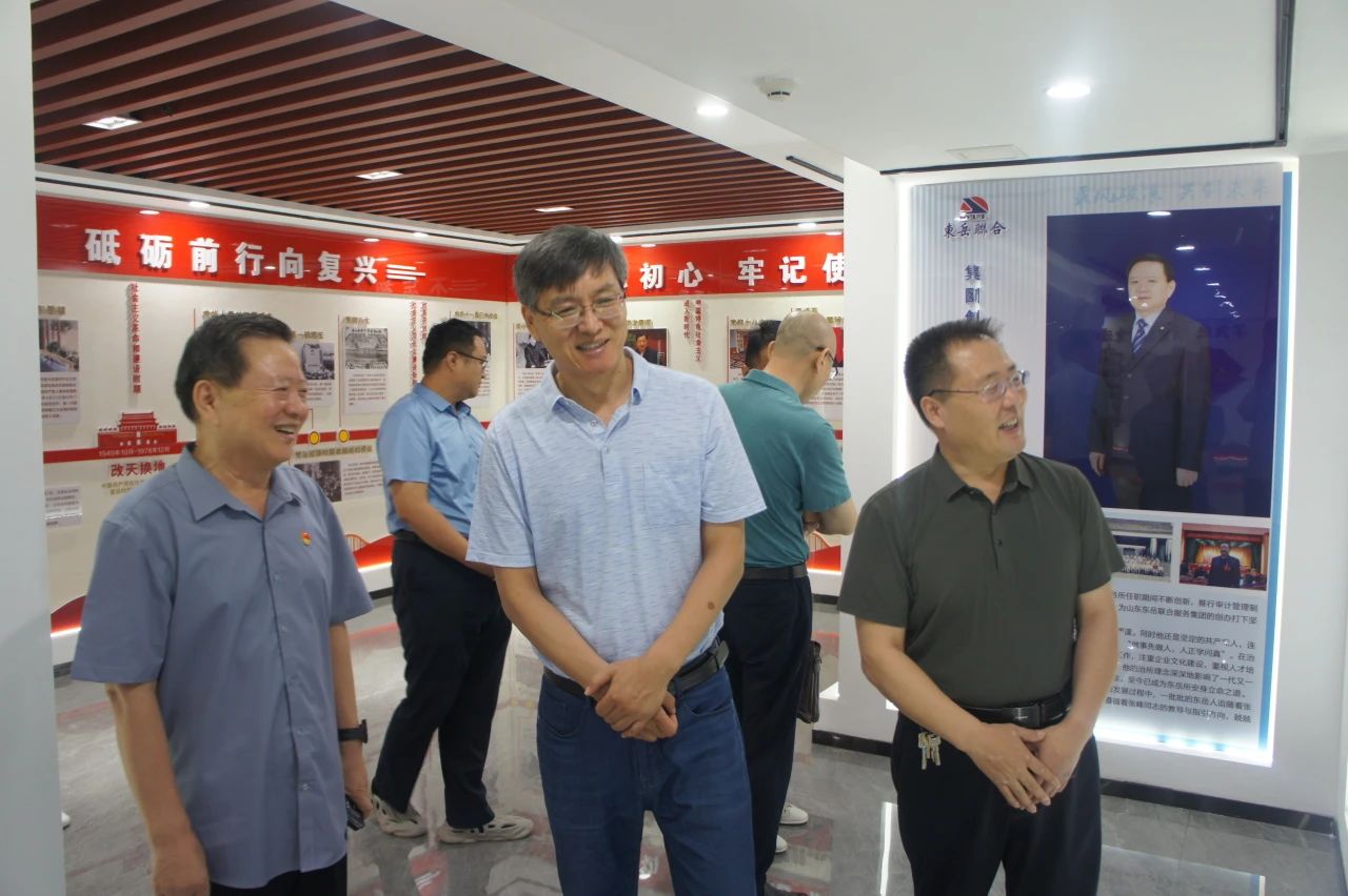 活动结束后,为加深政校双方对东岳联合集团实力与党建风采的了解,党总支书记、董事长张峰带领领导们参观了东岳联合的现代化办公布局,着重介绍党建引领企业发展、党建与业务开展,人才培养的深度融合,分享如何以高质量党建引领企业高质量发展的实践故事。