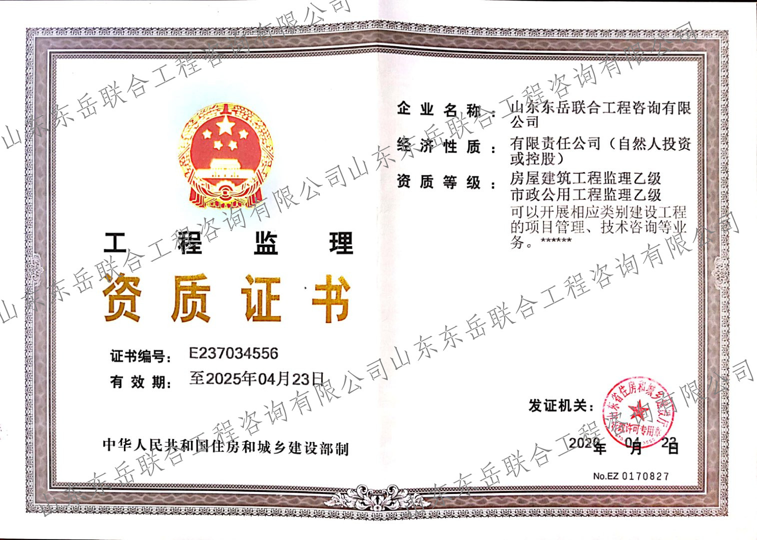 首页.企业资质. 山东东岳联合工程监理有限公司