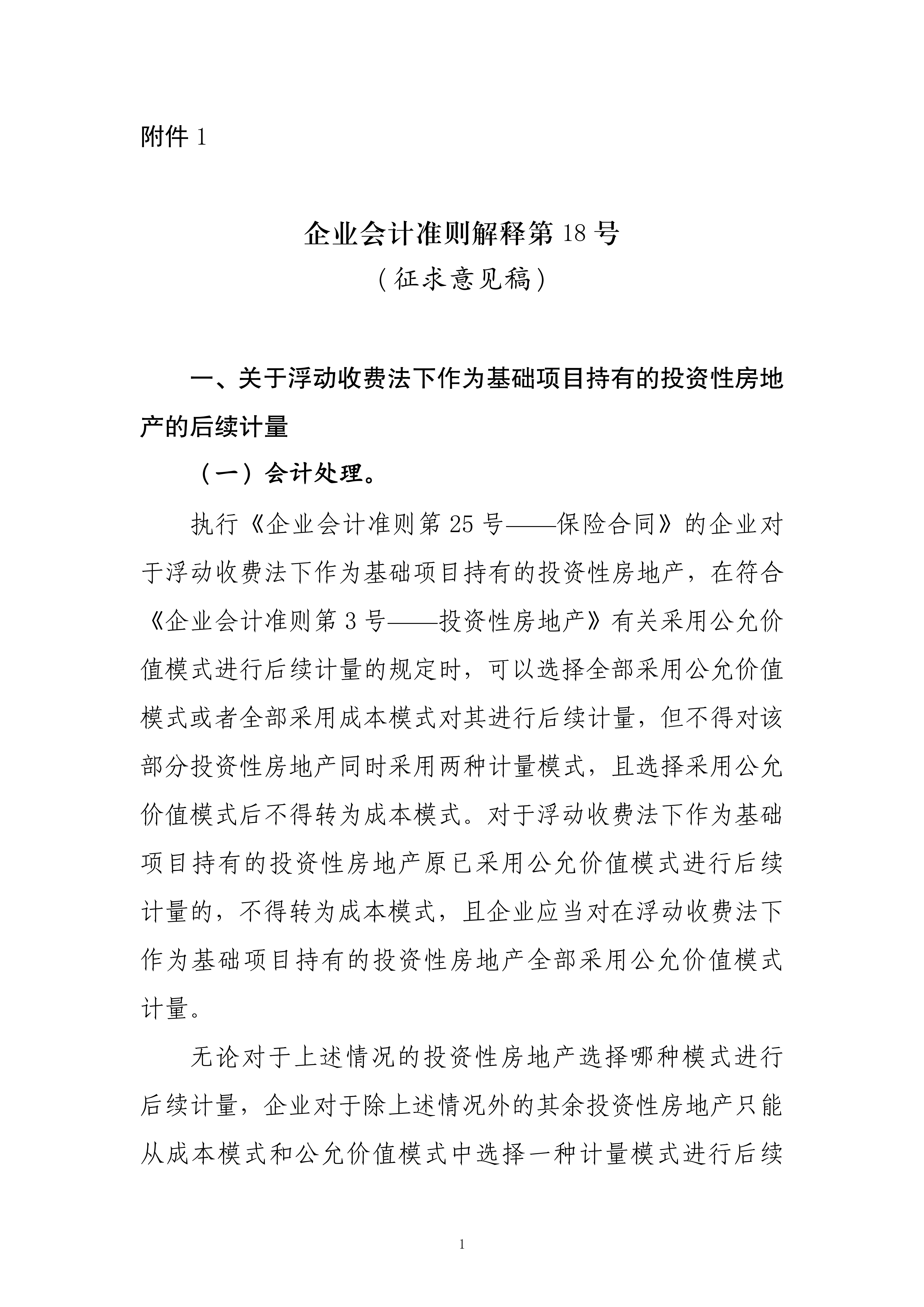 附件:1.企业会计准则解释第18号(征求意见稿)
